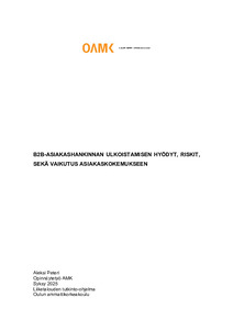 (2025)Tämän opinnäytetyön tavoitteena oli selvittää, mitä hyötyjä ja riskejä liittyy B2B-asiakashankinnan ulkoistamiseen sekä miten ulkoistaminen vaikuttaa asiakaskokemukseen. Työn taustana oli oma havaintoni siitä, että käytännön ...Avoin saatavuus / Open access / Öppen tillgång -