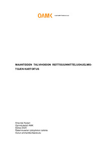 (2025)Tämä opinnäytetyö kertoo maanteiden talvihoidon reittisuunnittelusta ja reittisuunnitteluohjelmistojen vertailusta. Reittisuunnittelu on vaativa ja työläs prosessi. Reittisuunnitteluohjelmistosta olisi apua nykypäivänä ...Avoin saatavuus / Open access / Öppen tillgång -