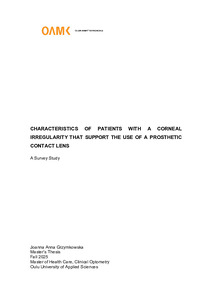(2025)Purpose: The first purpose of the study was to identify which current clinical methods are used by optometrists in Poland, and the second purpose was to create characteristics of patients with irregular corneas that support ...Avoin saatavuus / Open access / Öppen tillgång -