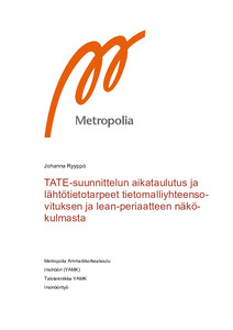 TATE-suunnittelun aikataulutus ja lähtötietotarpeet tietomalliyhteensovituksen ja lean-periaatteen näkökulmasta