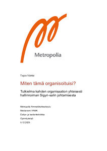 Miten tämä organisoituisi? : tutkielma kahden organisaation yhteisesti hallinnoiman Sigyn-salin johtamisesta