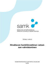 (2025)Tämän opinnäytetyön tavoitteena oli tutkia hinattavan henkilönostimen vetoaisan rakenteellista kestävyyttä ja kehittää vahvistusratkaisu, joka parantaa sen kestävyyttä erilaisissa kuormitustilanteissa. Työn toimeksiantajana ... -