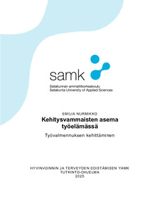 (2025)Opinnäytetyössä kehitettiin Satakunnan hyvinvointialueen vammaispalveluiden työvalmennusta. Työvalmennuksen tavoitteena on edistää kehitysvammaisten ihmisten asemaa työelämässä. Kehitysvammaisten työllistyminen palkkatyöhön ... -
