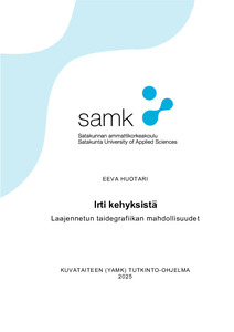 (2025)Opinnäytetyö Irti kehyksistä – Laajennetun taidegrafiikan mahdollisuudet syntyi halusta pyristellä irti sekä itselle tehdyistä raameista että perinteisestä tavasta esittää taidegrafiikkaa kehystettynä. Halusta löytää uusia ...