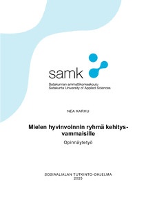 (2025)Tässä toiminnallisessa opinnäytetyössä tuotettiin kolmen (3) kerran mielen hyvinvointi ryhmä kehitysvammaisille. Mielen hyvinvointi ryhmän taustateoriana käytettiin mielenterveyden käsi -mallia, jonka pohjalta ryhmäkertojen ... -