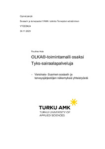 (2025)Tämän selvitystyön tarkoituksena oli tuoda esiin Varsinais- Suomen sosiaali- ja terveysjärjestöjen näkemyksiä yhteistyöstä OLKA®-toimintamallin mukaan Tyks-sairaalapalveluissa. Opinnäytetyön aineisto koostui sote- järjestöille ... -