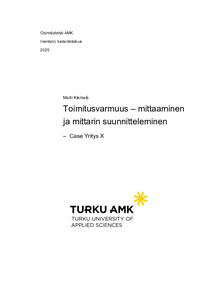(2025)Tämä opinnäytetyö on toimeksianto Yritys X:lle. Työn tavoitteena oli määrittää toimitusvarmuus, yrityksen nykytilan vaikutuksia toimitusvarmuuteen sekä sopivia mittarivaihtoehtoja. Teoria osuuden kautta tarkastellaan ... -