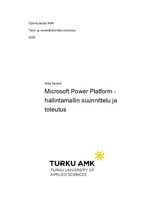 (2025)Tässä opinnäytetyössä suunniteltiin ja toteutettiin Microsoft Power Platform -hallintamalli. Opinnäytetyö laadittiin julkisen organisaation toimeksiannon pohjalta. Kehittämistyön tavoitteena oli lisätä Microsoft Power ... -