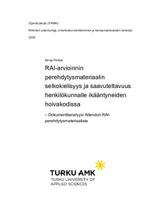 RAI-arvioinnin perehdytysmateriaalin selkokielisyys ja saavutettavuus henkilökunnalle ikääntyneiden hoivakodissa : dokumenttianalyysi Attendon RAI-perehdytysmateriaalista