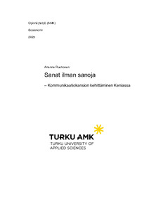 (2025)Tämän toiminnallisen opinnäytetyön tavoitteena oli kehittää kenialaiseen toimintaympäristöön soveltuva kommunikaatiokansio, joka tukee vammaisten lasten yksilöllisiä viestintätarpeita ja vahvistaa heidän osallisuuttaan ... -