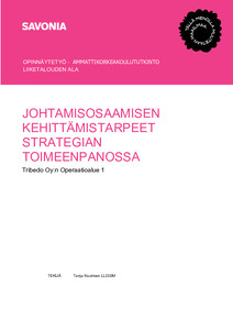 (2025)Tässä opinnäytetyössä tarkasteltiin Tribedo Oy:n Operaatioalue 1:n esihenkilöiden johtamisosaamista ja sen kehittämistarpeita strategian toteuttamisen näkökulmasta. Tavoitteena oli selvittää esihenkilöiden kokemuksia omasta ... -