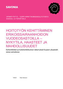 (2025)Hoitotyön kehittäminen on merkittävä osa terveydenhuollon vaikuttavuuden, laadun ja henkilökunnan työhyvinvoinnin edistämistä. Kehittämistyön onnistuminen vaatii organisaatiossa selkeitä rakenteita, työyhteisön sitoutumista ... -
