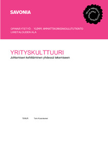 (2025)Tiivistelmä Yrityskulttuuri on organisaation menestyksen perusta, joka rakentuu pysyvistä arvoista ja käyttäytymismalleista sekä sosiaalisista vaikutteista, jotka ohjaavat ihmisiä omaksumaan ja noudattamaan yhteisiä normeja ... -