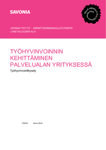 (2025)Opinnäytetyössä tutkittiin työhyvinvoinnin nykytilaa yläsavolaisessa palvelualan yrityksessä. Työhyvinvointi nähtiin keskeisenä tekijänä yrityksen toimivuuden, henkilöstön jaksamisen ja yrityksen palvelukyvyn kannalta. ... -