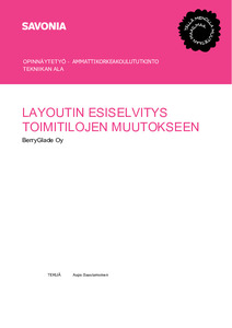 (2025)Opinnäytetyön tarkoituksena oli kartoittaa BerryGlade Oy:n nykyinen layout ja suunnitella yritykselle uusi layout. Yritys laajentaa toimitilojaan vuonna 2025, jonka takia uusi layout tarvitaan. Opinnäytetyön tavoitteena ... -