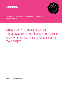 (2025)Opinnäytetyön taustalla oli Etelä-Savon ELY-keskuksen tarve saada ajantasainen kokonaiskuva pienten vesilai-tosten digitalisaation nykytilasta, haasteista ja tulevaisuuden tarpeista. Pienet vesilaitokset muodostavat ... -