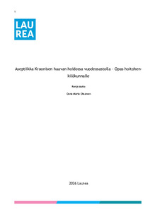 (2026)Tämän opinnäytetyön tarkoituksena oli tuottaa hoitohenkilökunnalle sairaalaan opas aseptiikasta haavan hoidossa. Tavoitteena työssä oli kehittää hoitohenkilökunnan osaamista haa-van hoidossa ja siihen liittyvässä ...Avoin saatavuus / Open access / Öppen tillgång -