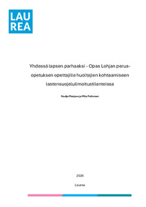 (2026)Opinnäytetyön tarkoituksena oli kehittää Lohjan perusopetukseen selkeä ja käytännönläheinen opas, josta opettajat saavat tukea huoltajien kohtaamiseen lastensuojeluilmoituksen ollessa aiheellinen. Opinnäytetyön tavoitteena ...Avoin saatavuus / Open access / Öppen tillgång -