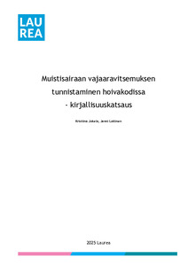 Muistisairaan vajaaravitsemuksen tunnistaminen hoivakodissa - kirjallisuuskatsaus