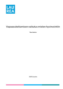(2025)Opinnäytetyön tarkoituksena oli tuottaa video vapaasukeltamisen hyödyistä mielenterveydelle. Tavoitteena opinnäytetyössä oli videon avulla tarjota tietoa vapaasukeltamisen hyödyistä mielenterveydelle kaikille aiheesta ...Avoin saatavuus / Open access / Öppen tillgång -