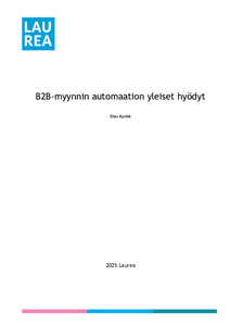 (2025)Tämän opinnäytetyön tavoitteena oli tuottaa käytännönläheinen kooste koskien myynnin automaatioita aloitteleville B2B-myyjille, erityisesti pk-yritysten tarpeisiin. Työn tarkoituksena oli helpottaa uusien myyjien perehdytystä ...Avoin saatavuus / Open access / Öppen tillgång -