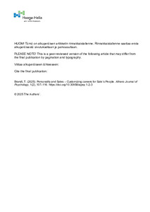 Athens Journal of Psychology : 2 (Athens institute for education and research, 2025)This study is focused on personality of sales personnel and how they experience sales situations. The interest is to see, if there are personality related tasks that suit especially well for certain personalities and what ... -