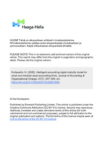 Journal of accounting & organizational change : 7 (Emerald Publishing, 2025)Purpose – This paper aims to present a digital maturity model for intelligent automation, specifically designed for small and medium-sized accounting firms. Intelligent automation facilitates the execution of complex ... -