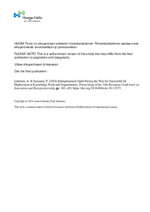 Proceedings of the European Conference on Innovation and Entrepreneurship : 1 (Academic Conferences International Limited, 2024)The rapid advancements in Artificial Intelligence (AI) have significantly shifted the landscape of work, altering the roles of experts and knowledge workers across various domains (Humala et al. 2023). This paper explores ... -