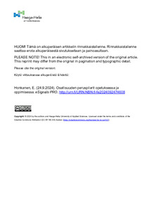 eSignals Pro : 24.9.2024 (Haaga-Helia ammattikorkeakoulu, 2024)Opetushenkilöstön kanssa olemme pohtineet INKLU-hankkeessa inklusiivista ammatillista koulutusta ja sen pedagogista toteutusta osallisuuden näkökulmasta. Tässä kirjoituksessa kuvataan pedagogisen toiminnan ja osallisuuden ...