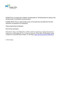 (Routledge, 2024)Our chapter contributes to understanding the phenomenon of leadership in radically decentralized organizations (RDOs). We argue that in RDOs leadership is not a person, but a collective system where responsibility and ... -