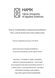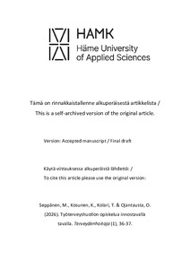HAMKin e-julkaisuja (Hämeen ammattikorkeakoulu, 2026)Yhteiskuntamme monimutkaiset ongelmat ja työelämän organisaatioiden haasteet kutsuvat ammattikorkeakoulujen opiskelijoita oppimaan yhteiskehittämällä. Muotoilulähtöinen oppiminen tarjoaa kokonaisvaltaisen pedagogisen ... -