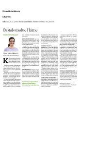 (Hämeen ammattikorkeakoulu, 2018)Suomalainen biotalous hakee vielä käsitteenä muotoaan, jolloin se voidaan myös ymmärtää hyvin eri tavoin eri näkökulmista katsoen. Tässä tutkimusraportissa tarkastellaan biotalouden käsitteen hahmottumista biotalouden ... -
