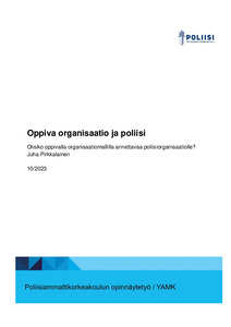 (2025)Tässä opinnäytetyössä tarkastellaan poliisin tilannetajua ja tilannetietoisuutta sekä niiden merkitystä päätöksenteossa erityisesti vaativien tilanteiden osalta. Työ on teoreettinen ja perustuu ajankohtaiseen tutkimuskir ... -