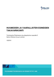 (Poliisiammattikorkeakoulu, 2016)Tässä opinnäytetyössä perehdytään tilanteeseen, jossa Pitkäniemen sairaalan akuuttipsykiatrian osastolle 5 hoitoon saapuvan potilaan mukana on huumeita tai vaarallisia esineitä ja aineita. Yhtenevää käytäntöä selkeine ... -