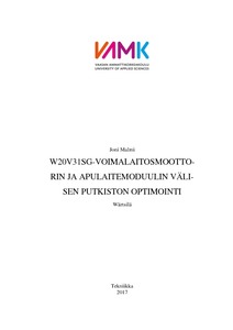 (Vaasan ammattikorkeakoulu, 2017)Opinnäytetyö tehtiin Wärtsilän W31-moottorisuunnitteluun. Työn aiheena oli optimoida nykyinen putkipääty 20-sylinteriseen W31-voimalaitoskaasumoottoriin. Tällä hetkellä käytössä oleva putkipääty on suunniteltu eri ... -