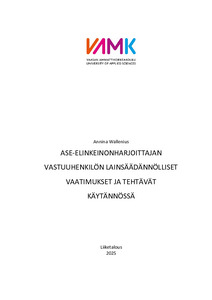 (2025)Tämä opinnäytetyö tarkastelee ase-elinkeinoharjoittajan vastuuhenkilön tehtävää ja siihen liittyviä lainsäädännöllisiä vaatimuksia Suomessa. Tutkimuksen tavoitteena oli selvittää, mitkä ovat vastuuhenkilön keskeiset ... -