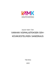 (2025)Tämä opinnäytetyö käsittelee 1960-luvulla rakennetun entisen voimalaitosrakennuksen sähköjärjestelmien saneerausta. Rakennus ei enää toimi alkuperäisessä tarkoituksessaan, mutta sen osia ja prosessilaitteita käytetään yhä. ... -