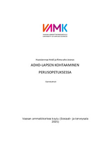 (2025)Tämän opinnäytetyön tarkoituksena oli lisätä opettajien tietoa ja ymmärrystä ADHD-lapsen kohtaamisesta perusopetuksessa. Työ toteutettiin toiminnallisena projektina yhteistyössä erään Vaasan ala-asteen koulun kanssa. ... -