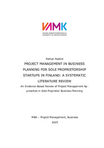 Project Management in Business Planning for Sole Proprietorship Startups in Finland: a Systematic Literature Review