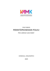 (2025)Opinnäytetyössäni tutkin perintä- ja ulosottoprosessien etenemistä sekä velallisen oikeuksia ja mahdollisuuksia näiden prosessien aikana. Opinnäytetyö on toteutettu kvalitatiivisena eli laadullisena tutkimuksena. Teoriaosuudessa ... -