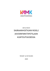 (2025)Tämän opinnäytetyön tarkoituksena on tutkia ja lisätä tietoa sairaanhoitajan roolista aivoinfarktipotilaan kuntoutuksessa. Tutkimuksessa tarkasteltiin erityisesti sairaanhoitajien kokemuksia ja roolia aivoinfarktipotilaan ... -