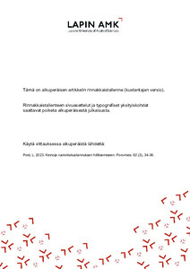 Pohjoisen tekijät : Lapin ammattikorkeakoulun julkaisuja : 26/2025 (Lapin ammattikorkeakoulu, 2025)Tämä julkaisu on tuotettu SaamSote – kulttuurisensitiivisen koulutuksen yhteiskehittäminen saamelaisten sosiaali- ja terveyspalveluille -hankkeessa. SaamSote-hanke (2023–2025) toteutettiin Lapin, Diakonia- ja Oulun ... -