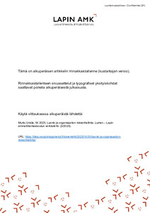 Pohjoisen tekijät : Lapin ammattikorkeakoulun julkaisuja : 17/2025 (Lapin ammattikorkeakoulu, 2025)Maailma muuttuu yhä nopeammin teknologian, organisaatiorakenteiden, politiikan, talouden ja ilmastonmuutoksen vaikutuksesta, mikä haastaa perinteiset käsitykset johtamisesta ja organisaatioiden ennakointikyvystä. Tulevaisuuteen ... -