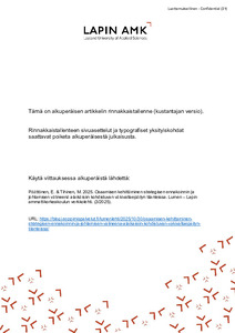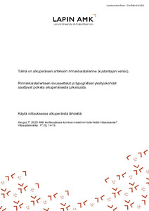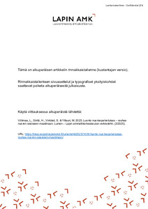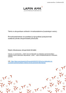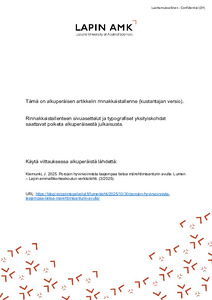 Pohjoisen tekijät : Lapin ammattikorkeakoulun julkaisuja : 19/2025 (Lapin ammattikorkeakoulu, 2025)Although efforts to promote physical activity and wellbeing have been ongoing for a long time, we are approaching a critical point where the effectiveness of this work must improve. Questions of individual and societal ... -