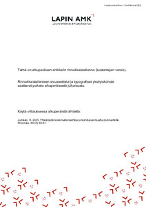 Pohjoisen tekijät : Lapin ammattikorkeakoulun julkaisuja : 28/2025 (Lapin ammattikorkeakoulu, 2025)Riskienhallinnan ja vastuullisen liiketoiminnan YAMK-koulutuksessa opiskelijat tekevät opinnäytetyönsä monialaisissa pienryhmissä. Tässä julkaisussa esitetyt tulokset ovat syntyneet opinnäytetyöprosessissa, joka käynnistyi ... -