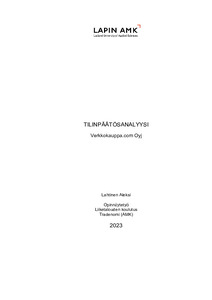 (2023)Tämän opinnäytetyön tarkoituksena oli tehdä Verkkokauppa.com Oyj:n tilinpäätösanalyysi vuosilta 2019–2022. Verkkokauppa.com Oyj on verkossa toimiva suomalainen vähittäiskauppa, joka myy tietotekniikkaa, viihde-elektroniikkaa, ... -