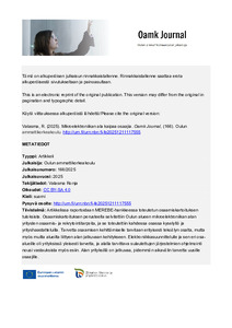 Oamk journal : 174 (Oulun ammattikorkeakoulu, 2025)Yhteiskunnan nopea muutos edellyttää korkeakoulutukselta innovatiivisia opetusmenetelmiä, jotka tukevat pedagogista joustavuutta ja oppimisen tehokkuutta. Immersiiviset oppimisympäristöt mahdollistavat realististen ja ... -