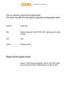 Dansens koreografier i finsk film 1920–1960: Estetik, genus och sociala ordningar