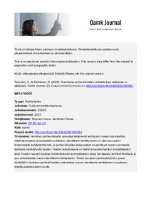 Oamk Journal : 2 (Oulun ammattikorkeakoulu, 2025)Henkinen perheväkivalta vaikuttaa kielteisesti kehittyvän nuoren identiteettiin, mielenterveyteen ja sosiaalisiin suhteisiin. Identiteetin kehittyminen on yksi nuoruuden tärkeimmistä kehitystehtävistä, ja perheväkivallan ... -