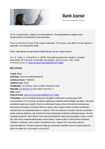 Oamk journal : 140 (Oulun ammattikorkeakoulu, 2025)Itsellisten äitien määrä kasvaa, mutta tutkimustietoa heistä on vielä vähän. Synnytyksen jälkeen itselliset äidit toivovat hoitajilta enemmän kiireetöntä läsnäoloa ja keskustelutukea uudessa elämänvaiheessa. Kannustus ja ... -